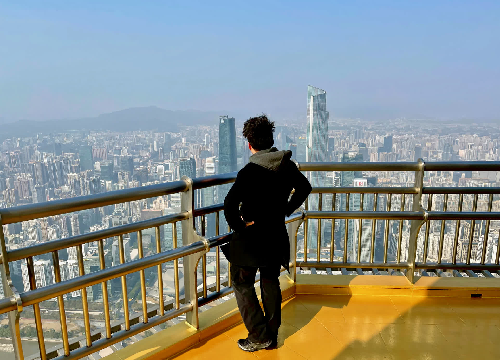 Across from Huacheng Plaza is Guangzhou Tower, aka “Small Waist.” Saw it yesterday by boat, heard you can go up - so let’s ascend for a sky view.