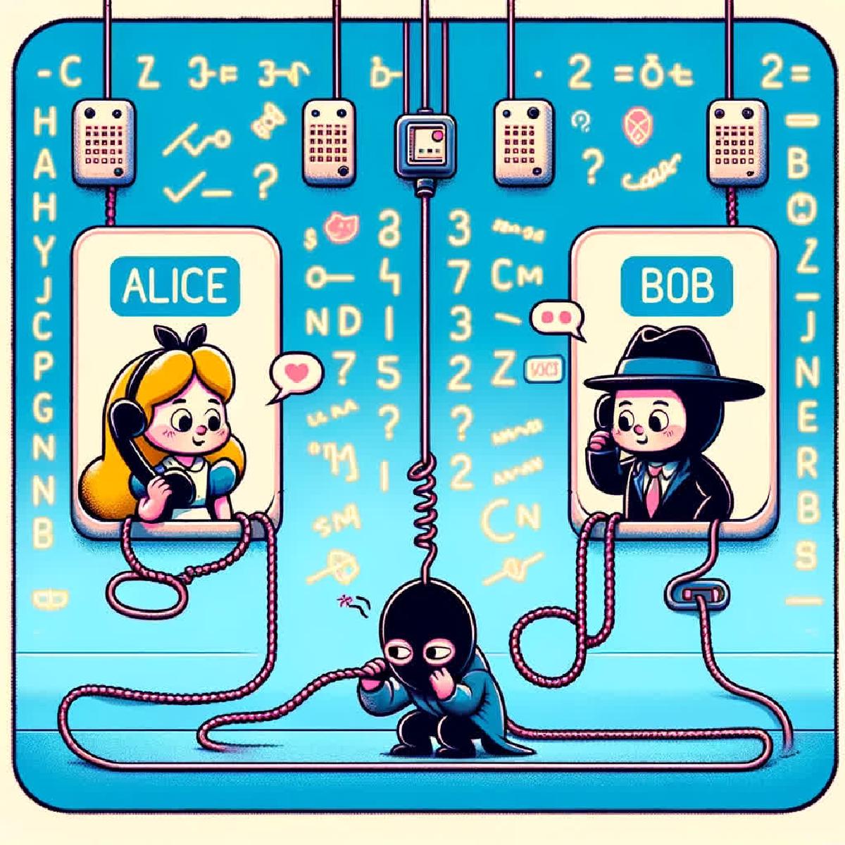 现假设有两个用户翠花(Alice)与老王(Bob),正在使用偷窥狂马大帅(Oscar)家的垄断聊天软件宏信(MarcoMessage)讨论私密的事情。譬如: