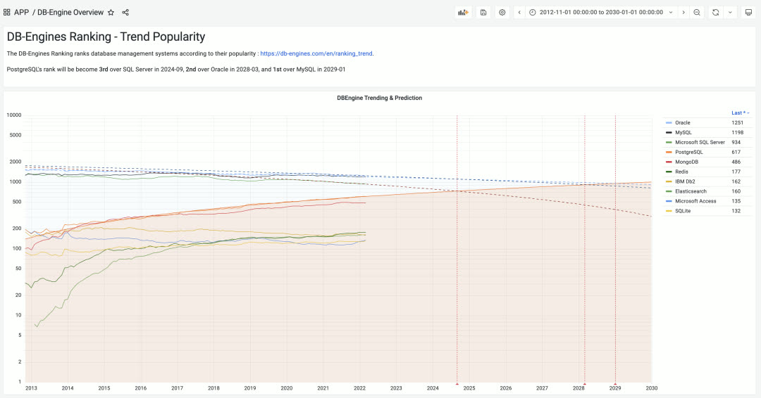 DBEng Trend:使用权威网站 DBEngine 流行度趋势数据,预测 PostgreSQL 什么时候会成为世界上最流行的关系型数据库