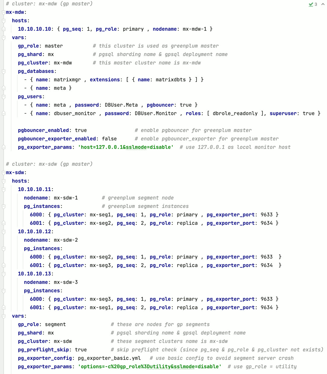 需要说明的是,Pigsty 支持的并不是原生的 Greenplum,而是它的一个分支:MatrixDB。Greenplum 的正式版本目前仍然是 6.x,基于 PostgreSQL 9.6 内核。而 MatrixDB 则基于 Greenplum 7 和 PostgreSQL 12 内核,还有额外的时序功能支持。因此 Pigsty 使用 MatrixDB 作为 Greenplum 的替代实现。