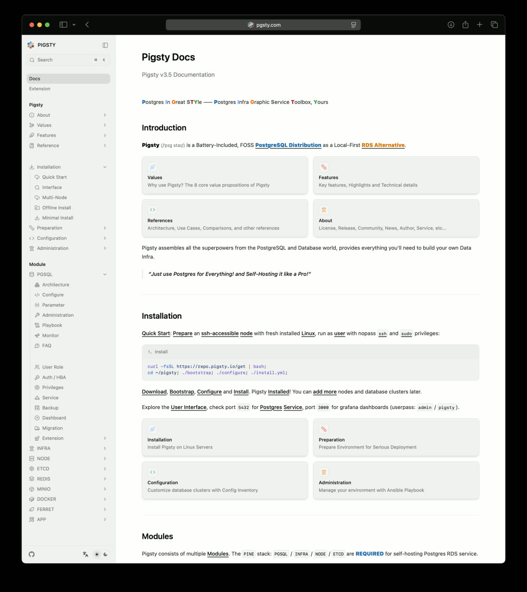 Pigsty v3.5:4K Star,PG18支持,421个扩展