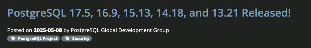 • PostgreSQL 17.5, 16.9, 15.13, 14.18, 13.21