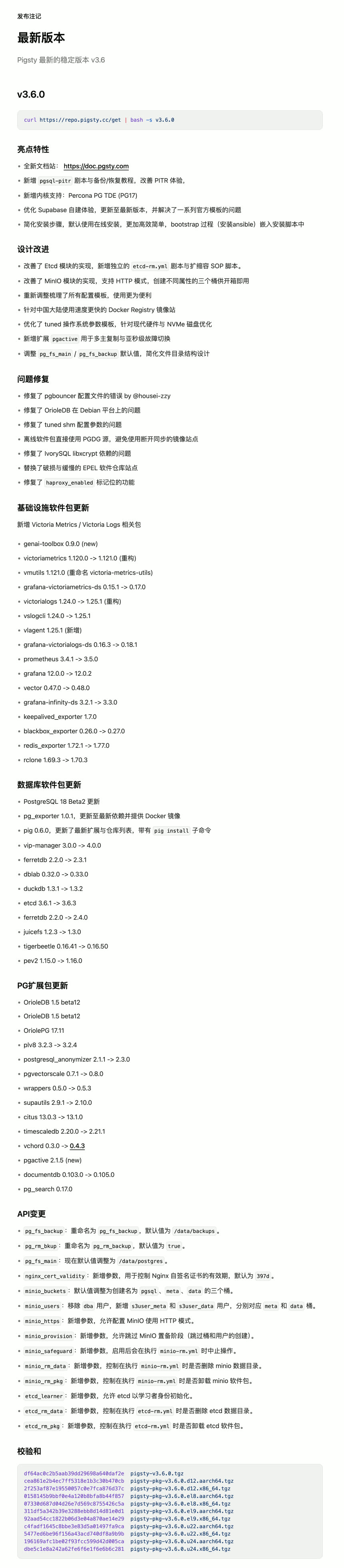 Pigsty v3.6.1 版本发布,PostgreSQL 小版本更新!