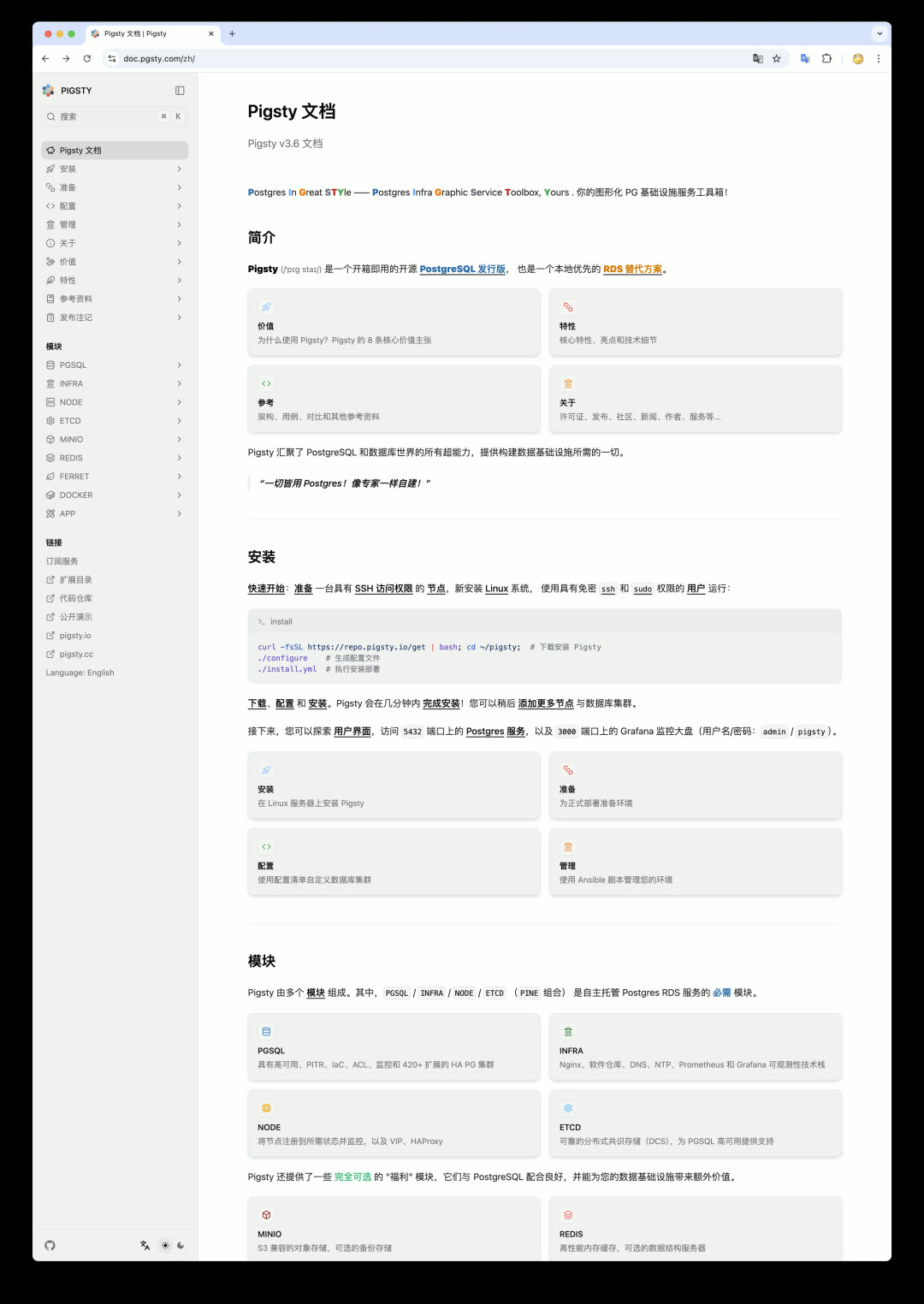 Pigsty v3.6.0 版本发布,全新文档站与 PITR 增强!
