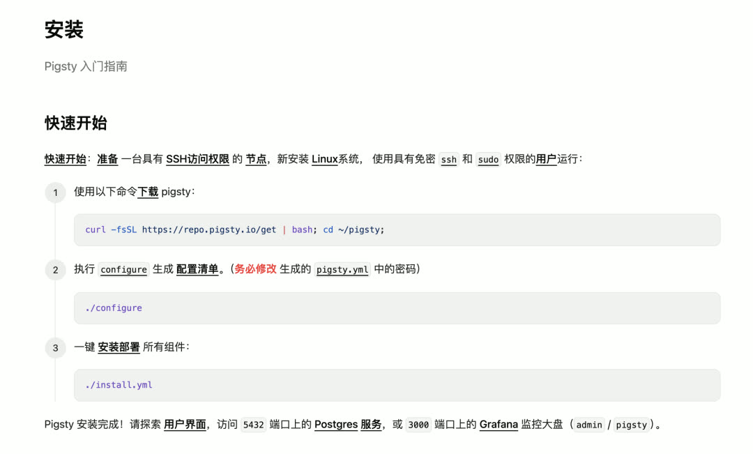 curl -fsSL https://repo.pigsty.io/get | bash; cd ~/pigsty; ./configure; ./install.yml