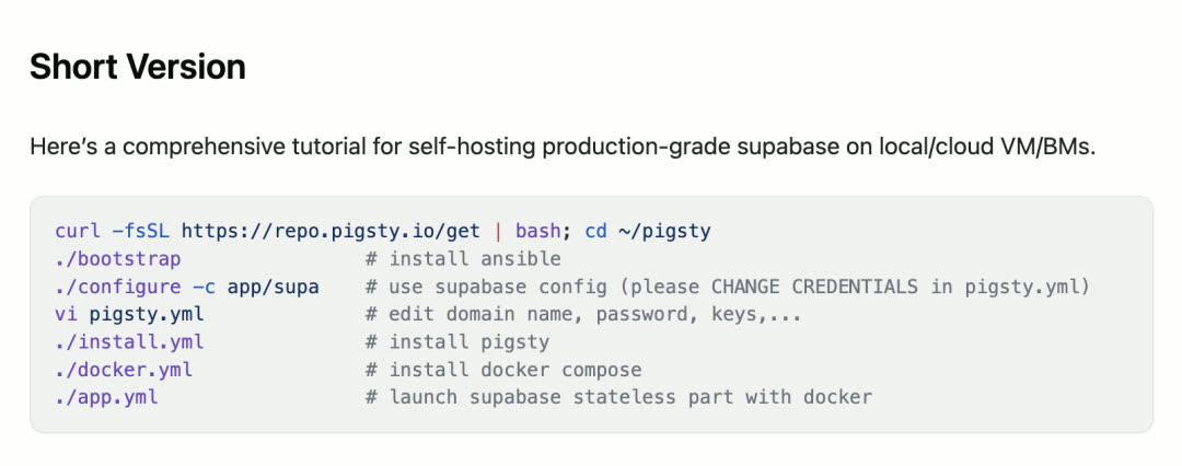 Pigsty v3.6 提供了更流畅的 Supabase 自建体验,并修复了 Supabase 官方模板中的若干问题: