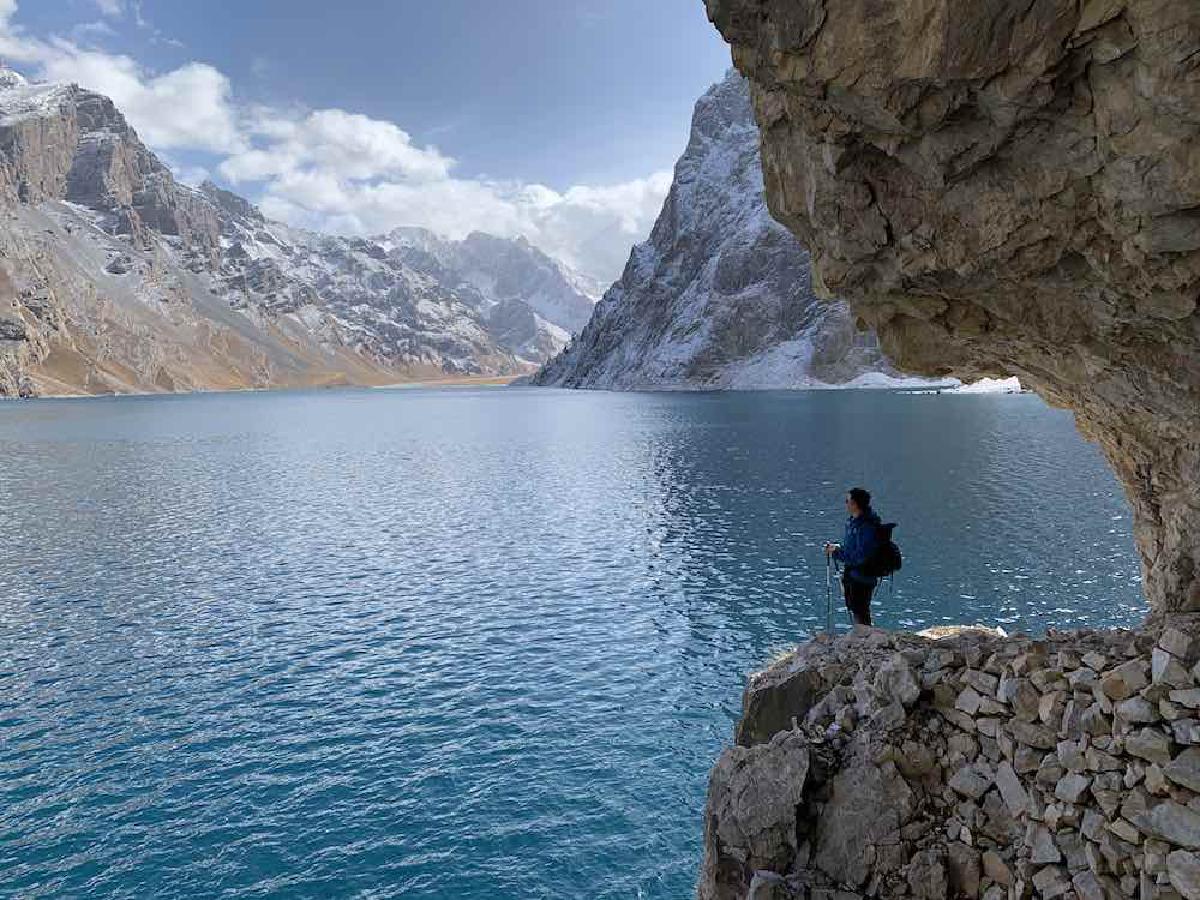 10月5日 大雪,今天是风景最美的一天,也是最虐的一天。我们要环天堂湖到对岸,途径著名的老虎嘴。然后爬升800米翻越海拔3950的阿克布拉克达坂,再下降一千多米进入博奥孜克里克河谷。